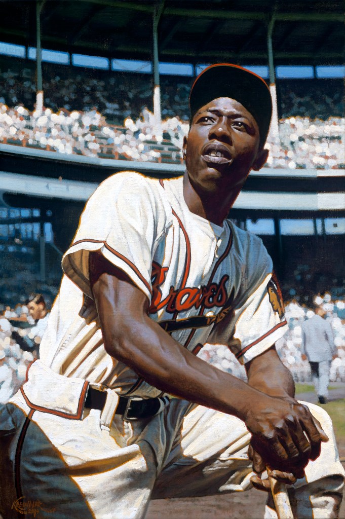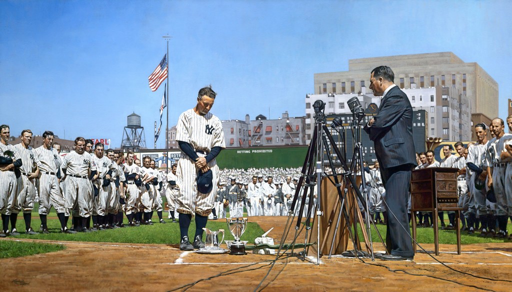 A great part of his success as an artist relates to how he has developed his sense of historical accuracy when depicting these snapshots of a moment. Those “inane details” are seen through the angle of the sun and how it is reflected through the atmosphere at a specific time of day. He considers how that lighting impacts the shades of color on a uniform. He has to decide who is sitting in the stands and where they would historically have been placed. It’s the minutiae that creates the sense of meaning and nostalgia that are present in every single one of his works.